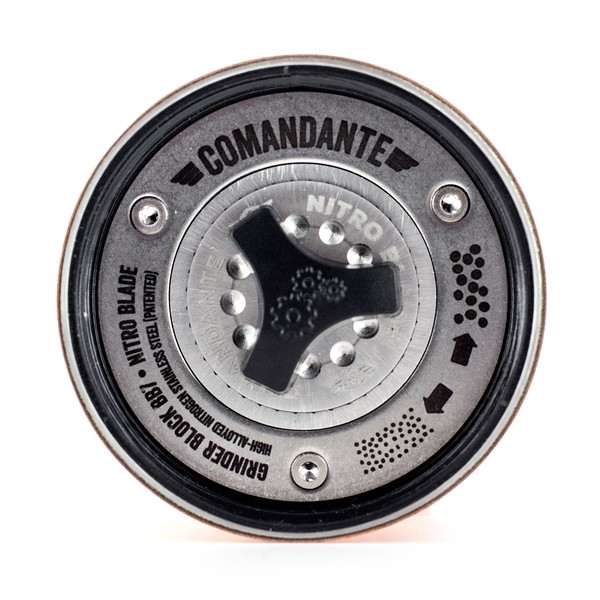 A Comandante egyedi dizájnnal is rendelkezik. A kiváló minőségű anyagok használata biztosítja a megbízhatóságot és a könnyű használatot. A daráló rozsdamentes acélból készült, és vékony réteg fa furnérral van borítva. A kényelmes, formázott fogantyú tölgyfa nyélben végződik. Az őrlőedény és a kiegészítő tartály vastag üvegből készült, és egyenként 40 gramm kávé fér bele. A gyártáshoz használt műanyag 100 %-ban élelmiszer-biztonságos. Az egész egy tökéletesen kompatibilis kialakítás.