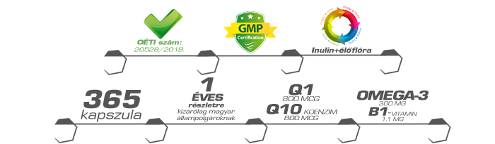 Ez a One Year Product termék hatféle élőflórát tartalmaz emelt csíraszámban, továbbá a hatékonyságot növelő Inulint.
