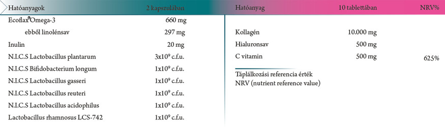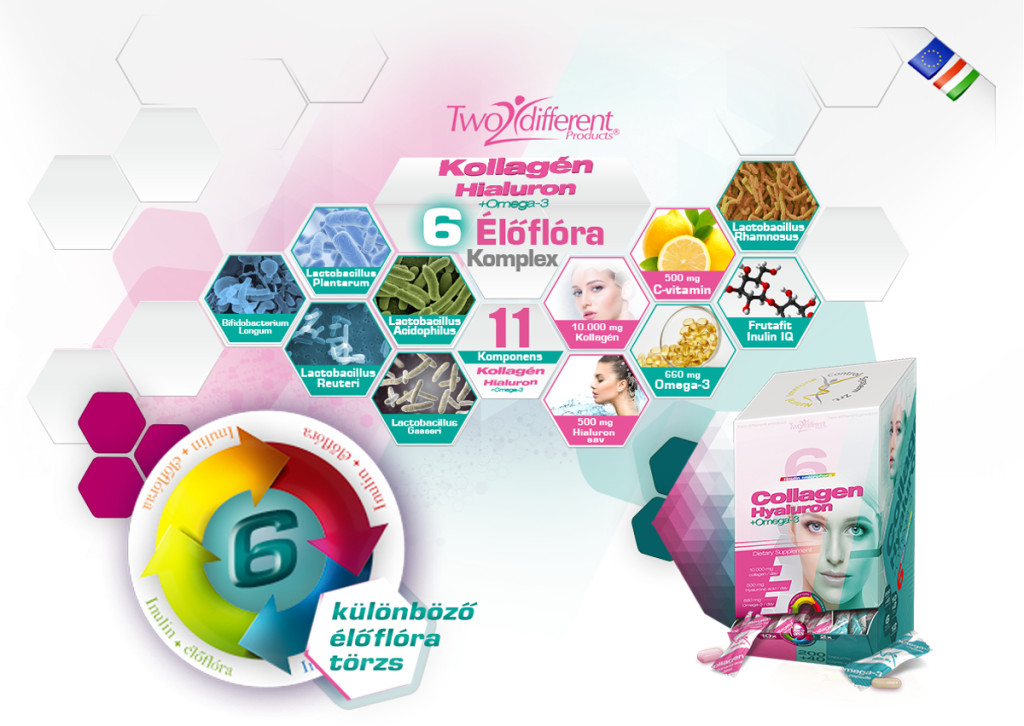 Innovatív kezdeményezésként vezetjünk be a Two Different Products termékkategóriánkat - a két eltérő terméket kombináltan tartalmazó, egyedi termékcsoportunkat. Ez a vadonatúj koncepció lehetővé teszi, hogy egy csomagon belül a termék-összetevőknek megfelelően választott, két eltérő technológiával készült terméket, kapszulát és tablettát egyszerre kínáljunk. A tablettázott forma biztosítja, hogy a nagy térfogatú, de a gyártás során fellépő nyomást jól viselő hatóanyagok kompakt módon elférjenek a tablettán belül, míg a megszokott kapszulázott kiszerelés garantálja, hogy az élőflóra törzsek életképes formában juthassanak fogyasztójuk szervezetébe.